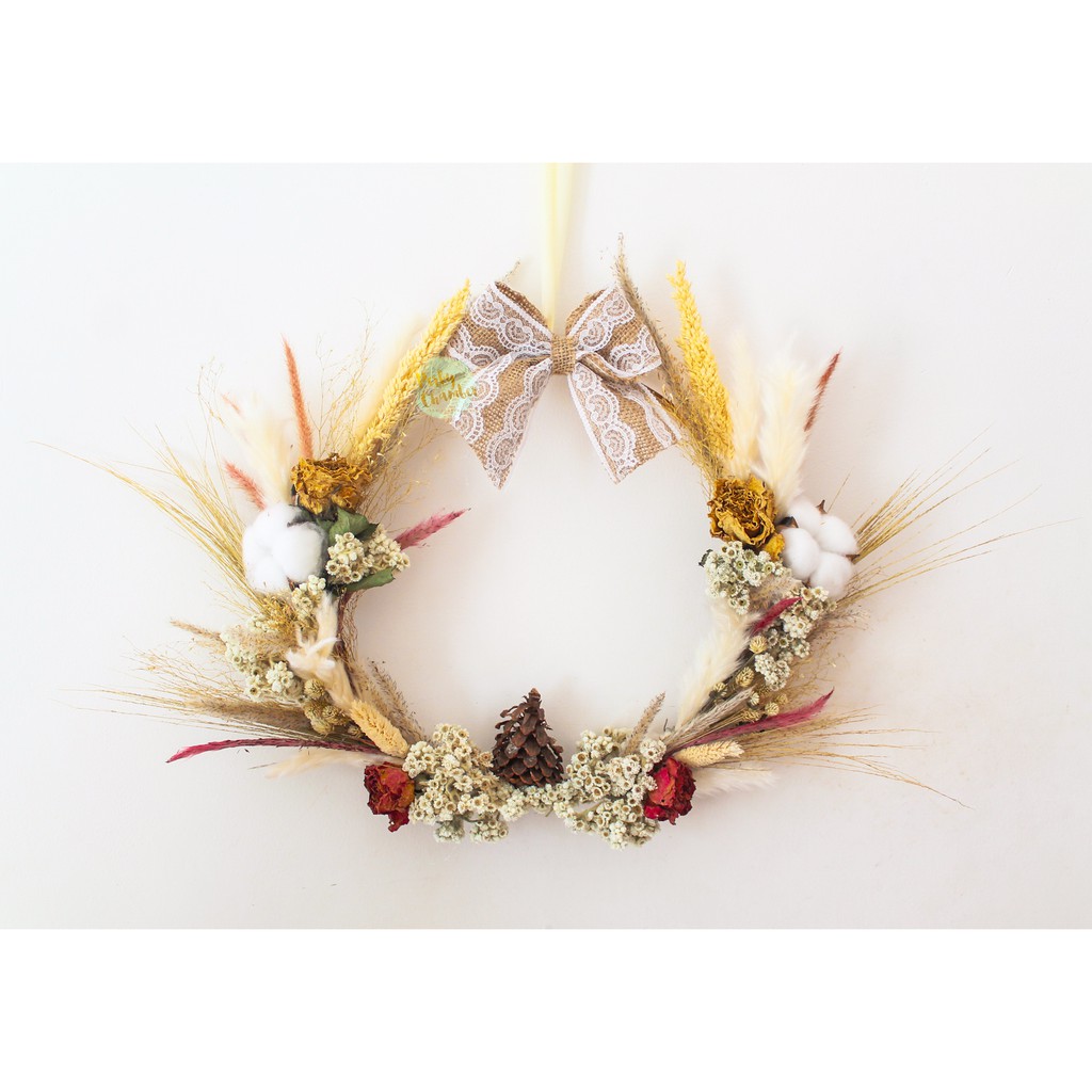 Jual Boho Dried Flower Wreath Rangkaian Bunga Kering Dekorasi Natal Hiasan Pintu Dekorasi Rumah Rustic Shopee Indonesia